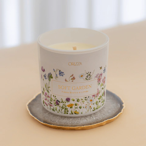 Kit Vela Soft Garden + Porta Velas de Ágata com borda dourada